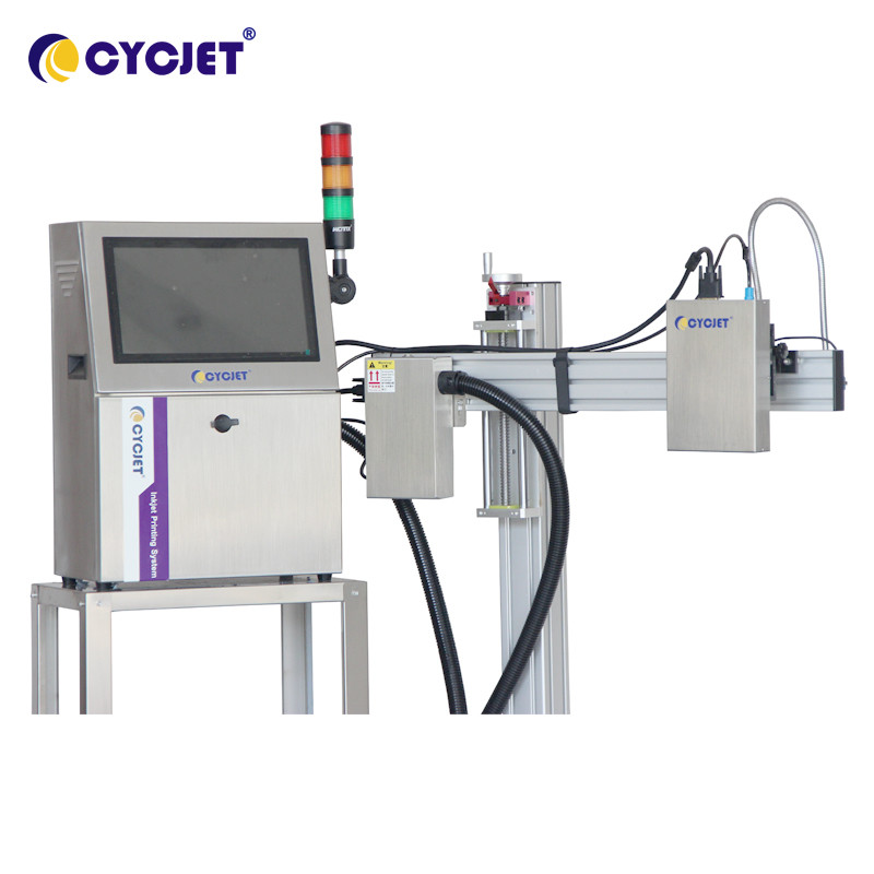 Aumentado para imprimir as mensagens complexas de alta qualidade que utilizam uma altura da cópia de até 143.6mm alto, a impressora a jato de tinta profissional de CYCJET C702i permite que os fabricantes substituam completamente etiquetas caras com as mensagens da cópia-em-procura. Caracterizando distâncias líder de mercado do lance da tinta, as impressoras do código de barras do Inkjet oferecem as tolerâncias de perdão da distância entre a cabeça de impressão e o produto que estão sendo imprimidos assim como asseguram a qualidade de impressão máxima em superfícies irregulares.